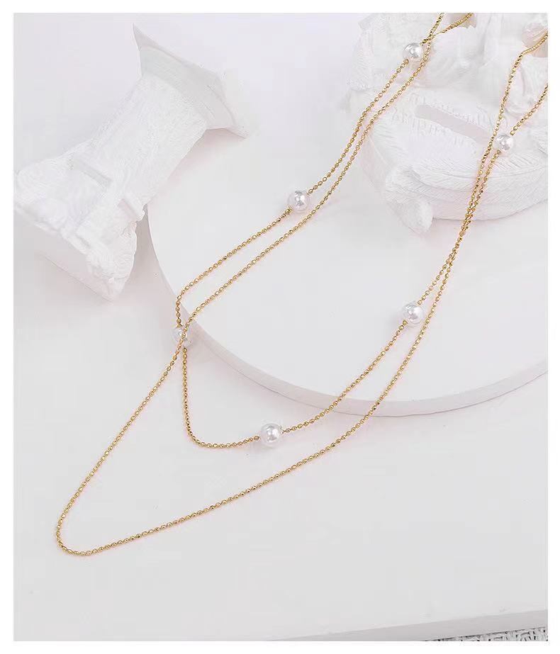 品のある女っぽさが薫る、2連チェーンパールネックレス