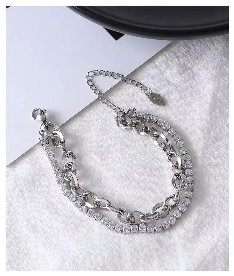 上品に輝くビジュー&大ぶりチェーンの2連ブレスレット。