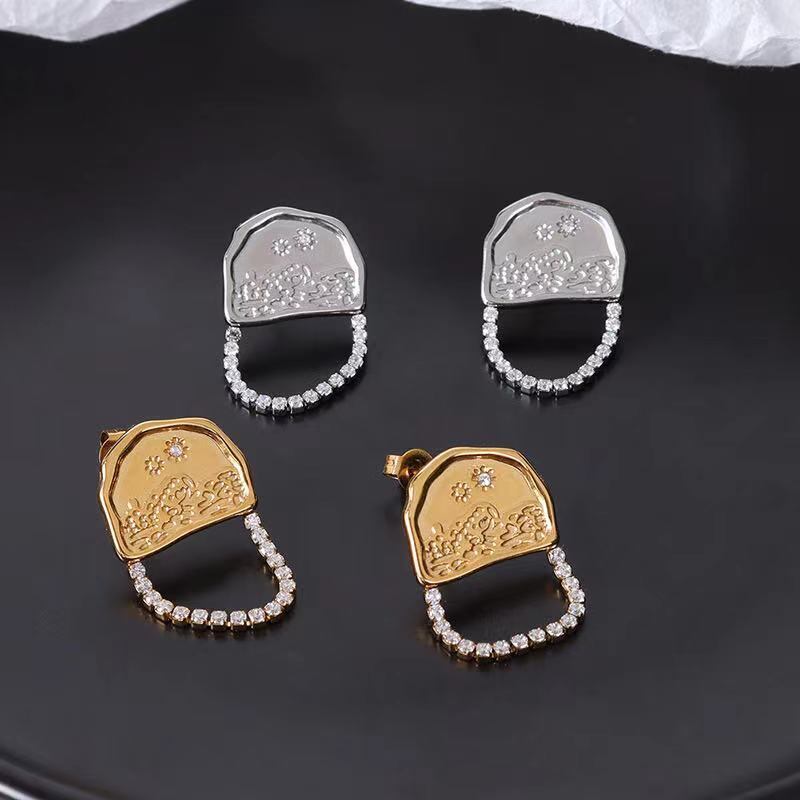 オトナ上品に揺れる贅沢ビジューチェーン×ハワイアン風メタルピアス。