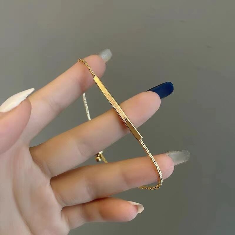 華奢なチェーンと優美なカーブを描くバーモチーフを組みわせた。