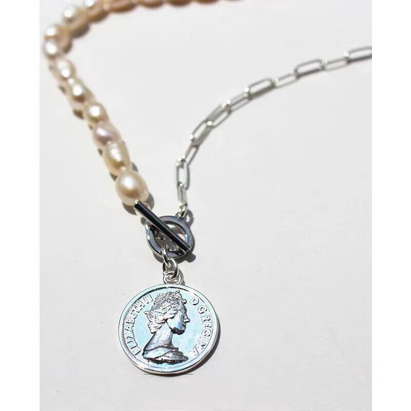 ネックレス マンテルネックレス コイン パール バロックパール 天然パール kn001