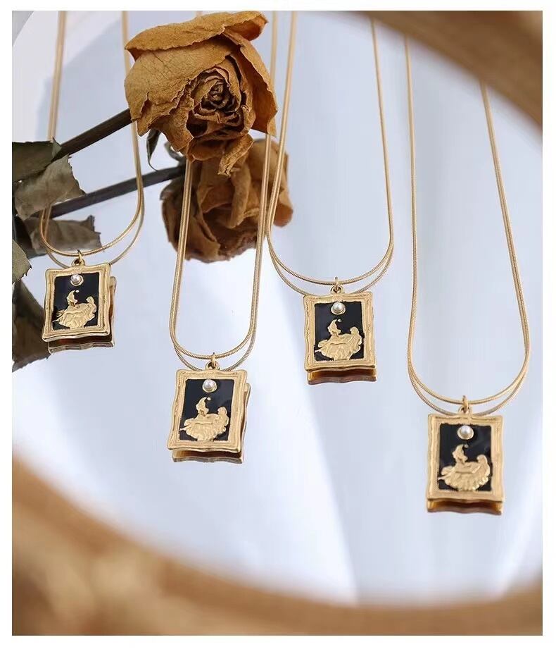 ネックレス パールx写真フレーム ステンレス製 kn059