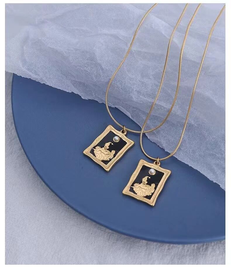 デコルテを神秘的に飾る写真フレームに一粒パールが飾ったネックレス