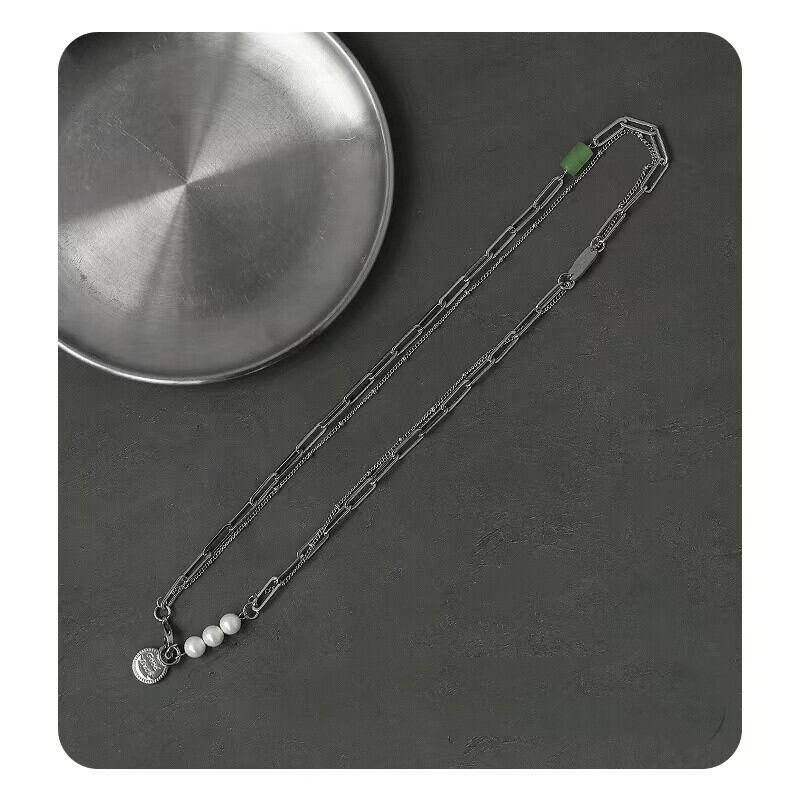 ネックレス 2WAY仕様 ステンレス製 天然石 パール 金属アレルギー kn108